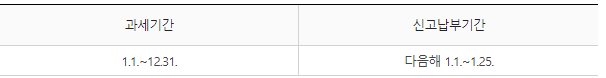 정기신고 납부기간 : 1월1일~1월25일까지