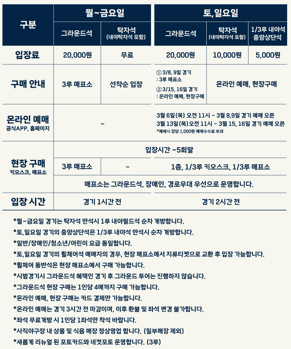 시범경기 티켓예매및 입장 안내